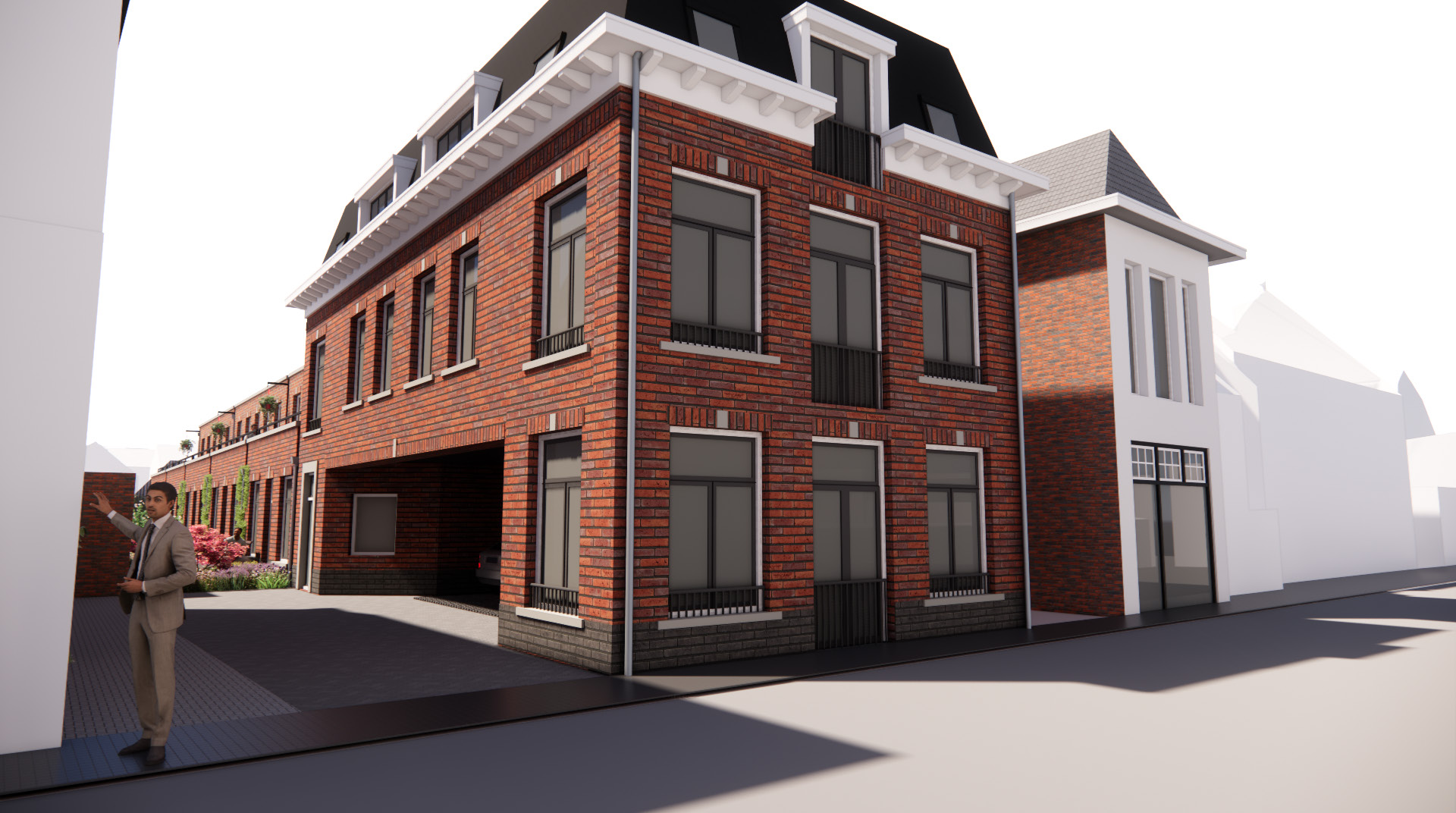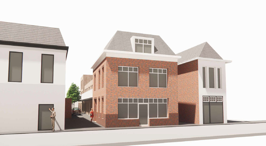 - Het bakstenen volume aan de straat is smaller geworden. Dit in verband met inparkeren nieuwe situatie.
