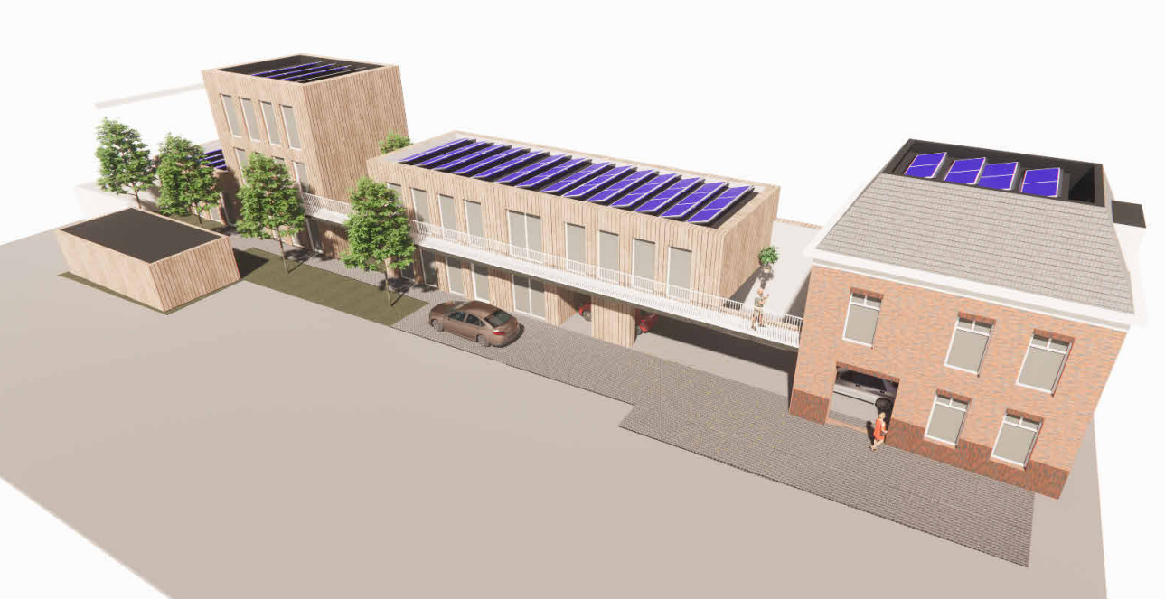 - De hoogte: in het principe akkoord was er in het achtervolume een 3 e bouwlaag. Deze is er uit. Daar zullen de bewoners blij mee zijn.