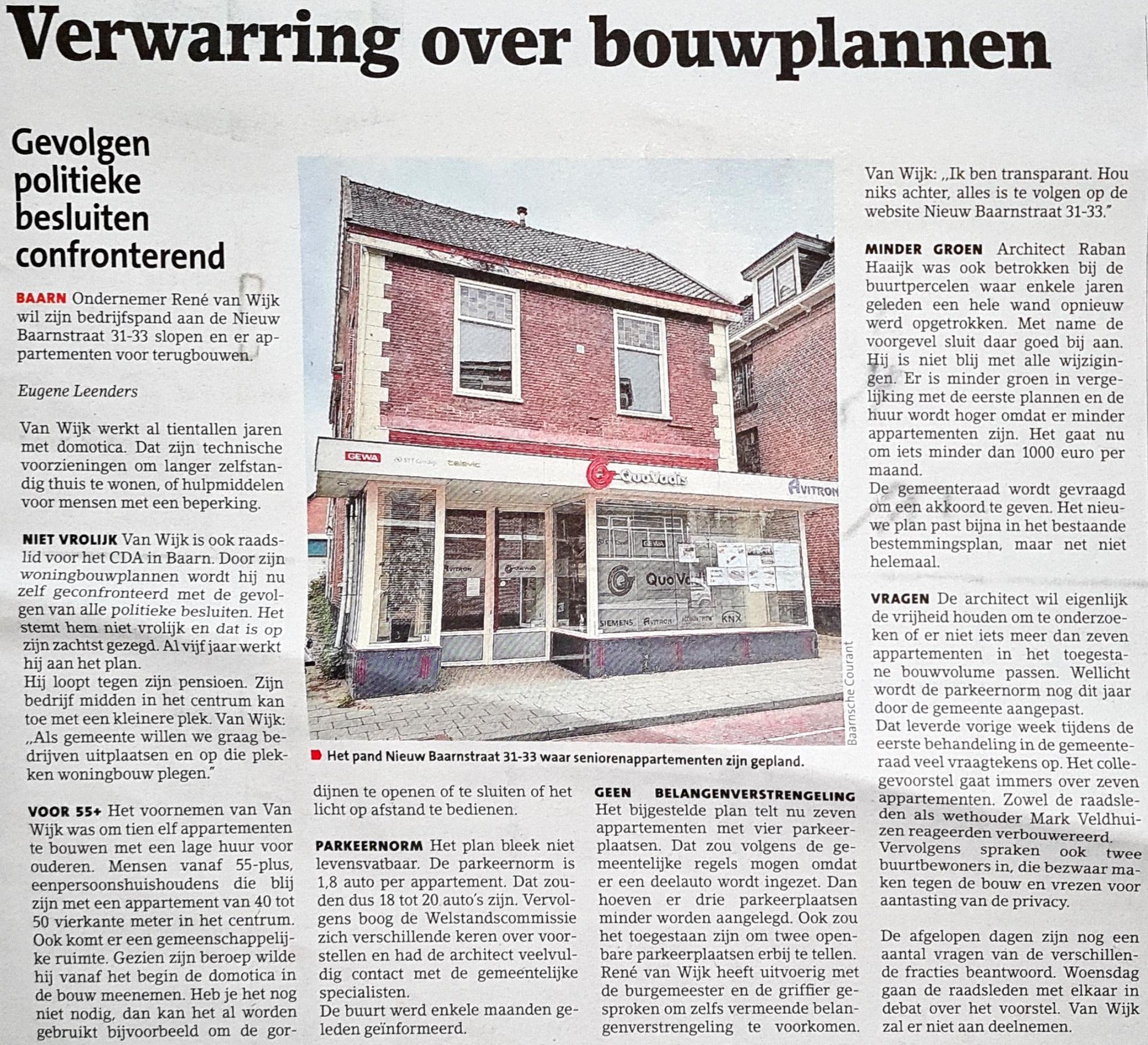 Naar aanleiding van de informatiebijeenkomst in de Gemeenteraad van Baarn die op woensdag 4 oktober is gehouden, verschijnt het volgende artikel in de Baarnsche Courant:
